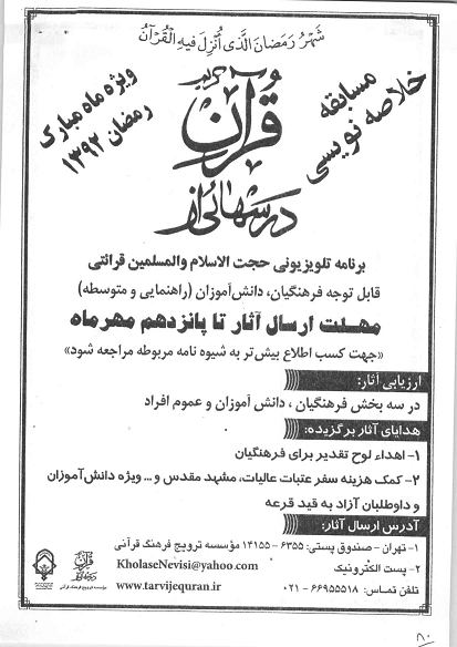 با عنایت به نامهی شمارهی 402/16836/631 مورخهی 02/04/92 وزارت آموزش و پرورش ، در خصوص ممنوعیت استفاده از سایت و وبلاگ خارج از پورتال وزارتی، لذا تا اطلاع ثانوی این آموزشگاه برنامهای در خصوص بروزآوری وبلاگ حاضر ندارد.